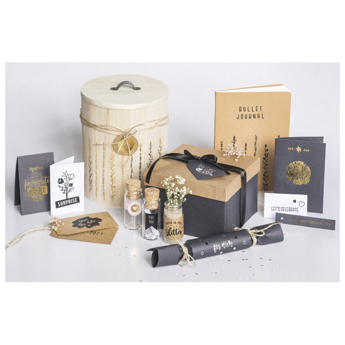 sadrži: 1 list sa motivima dimenzije: 10× 19 cm i 1 drveni štapić; idealan za dekoriranje papira i kartona, također prenosiv na glatke površine poput stakla, porculana, drva i mnogih drugih u dekorativne svrhe; sa uputama (izrezati motive, odlijepiti podložnu foliju, staviti na odabrano mjesto i prenijeti trljanjem); nije perivo u perilici posuđa; blister Bordura – sjajna Pakiranje: 1/6