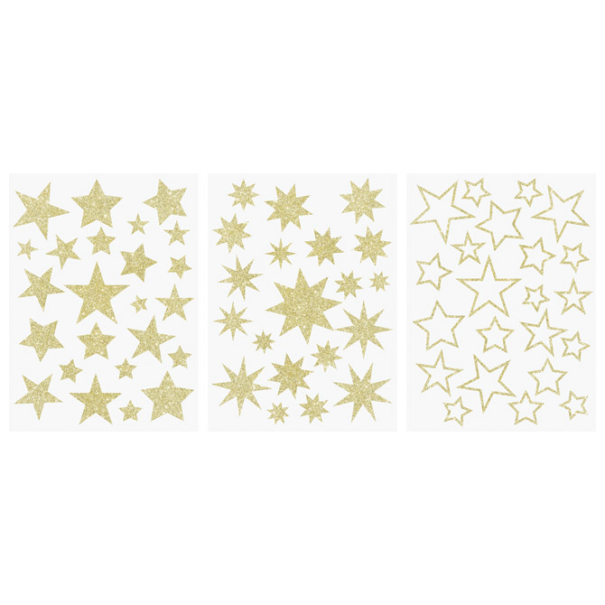 Proizvod: Naljepnice ukrasne za staklo A4 Zvijezde pk3 Heyda 20-35844 69 glitter zlatne blister