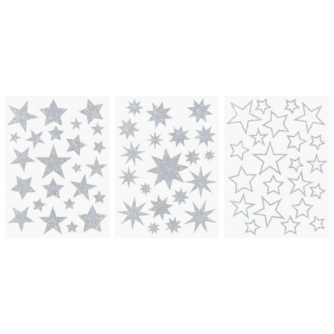 Naljepnice ukrasne za staklo A4 Zvijezde pk3 Heyda 20-35844 70 glitter srebrne blister