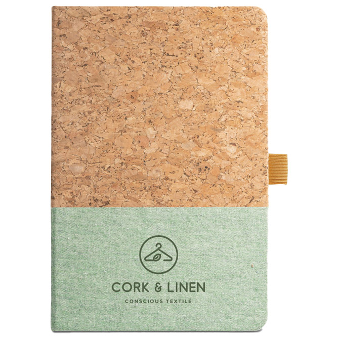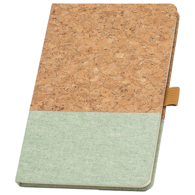 A5 notes sa koricma od pluta i lana na dnu naslovnice. Notes ima 192 bež stranice na linije nabaljene (70 g/m2), izrađenom od FSC™ certificiranog materijala i drugih kontroliranih materijala, i držač za olovku (olovka nije uključena) dimenzije 140 x 210 mm Pakiranje: 1/40