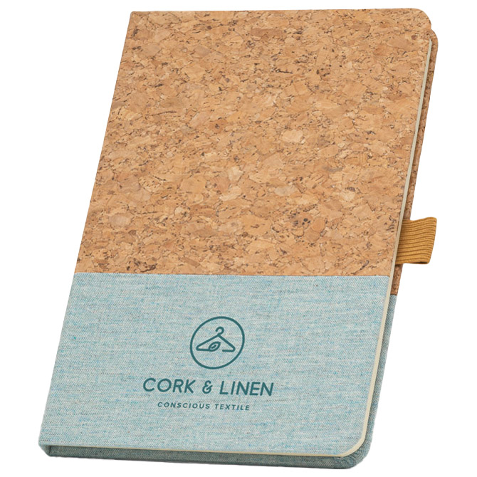 A5 notes sa koricma od pluta i lana na dnu naslovnice. Notes ima 192 bež stranice na linije nabaljene (70 g/m2), izrađenom od FSC™ certificiranog materijala i drugih kontroliranih materijala, i držač za olovku (olovka nije uključena) dimenzije 140 x 210 mm Pakiranje: 1/40