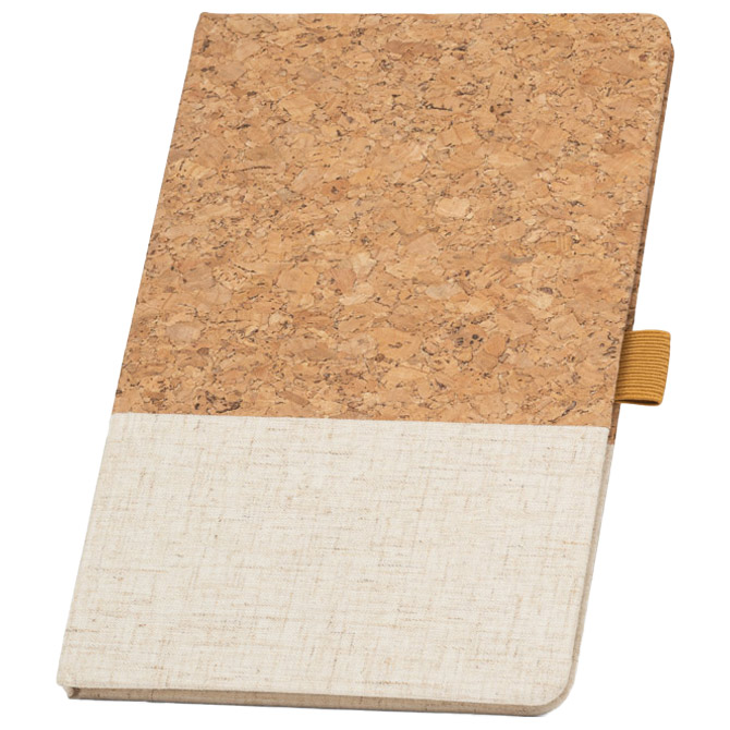 A5 notes sa koricma od pluta i lana na dnu naslovnice. Notes ima 192 bež stranice na linije nabaljene (70 g/m2), izrađenom od FSC™ certificiranog materijala i drugih kontroliranih materijala, i držač za olovku (olovka nije uključena) dimenzije 140 x 210 mm Pakiranje: 1/40