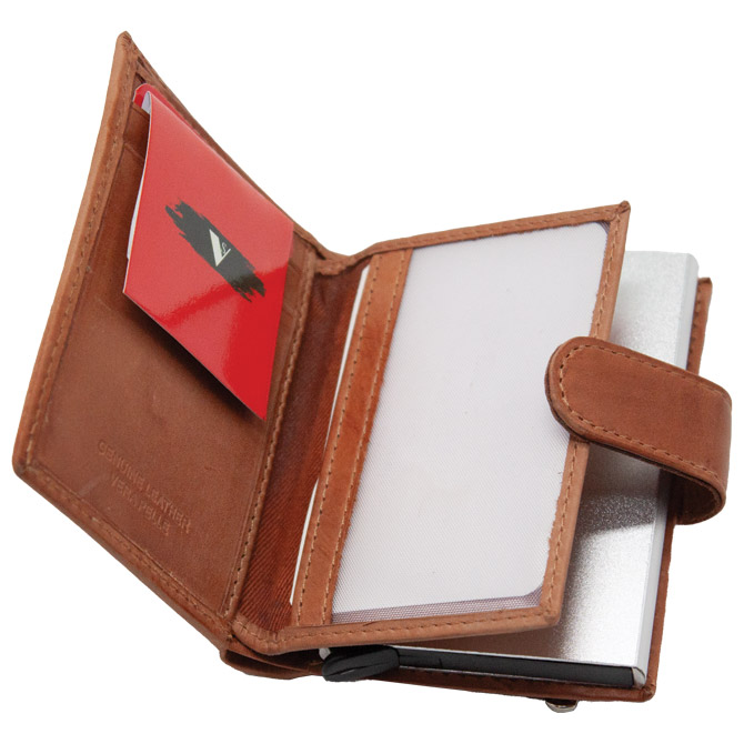 kožni; za kartice s RFID zaštitom; odjeljak za sitan novac; dimenzija: 10×7 cm; zatvaranje na gumb; u poklon kutiji Pakiranje: 1