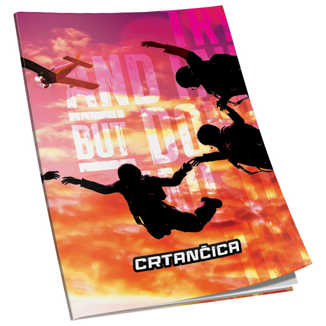 format: B5; papir: 80 g/m2; korice mat plastificirane i UV lak parcijalno (kunstdruck 300 g/m2); sa predlistom i zalistom crtančica za prvi razred; 16 listova Pakiranje: 20/120/9600