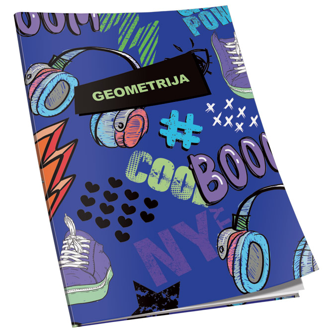 format: B5; papir: 80 g/m2; korice mat plastificirane i parcijalno glitter (kunstdruck 300 g/m2); sa predlistom i zalistom geometrija; 16 listova Pakiranje: 20/120/9600