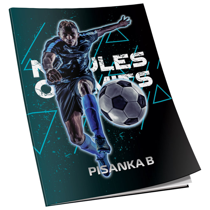 format: B5; papir: 80 g/m2; korice mat plastificirane i UV lak parcijalno (kunstdruck 300 g/m2); sa predlistom i zalistom pisanka B za prvi razred; 16 listova Pakiranje: 20/120/9600