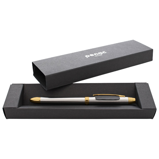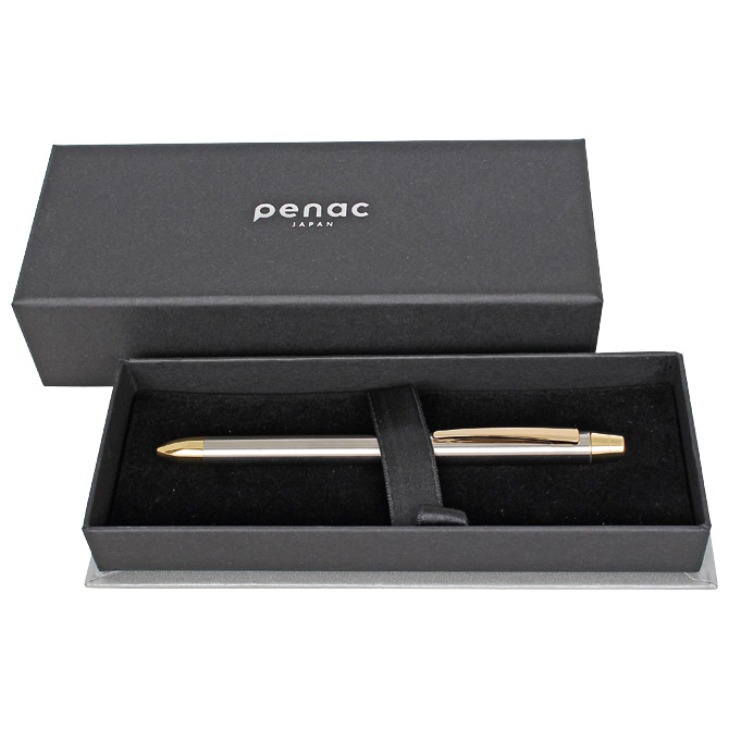 2 kemijske: 1 crvena i 1 plava tinta (mach ink) i tehnička olovka (mina 0,5 mm); okretni (twist) mehanizam (360°) u oba smjera; tijelo olovke od nehrđajućeg čelika; metalni vrh i klipsa; Mach tintu karakterizira niska viskoznost koja stvara osjećaj lagodnog klizanja po papiru; s gumicom (bez lateksa i PVC-a); rezervni uložak D1BR6707 (0,7 mm); u poklon kutiji Pakiranje: 1/12