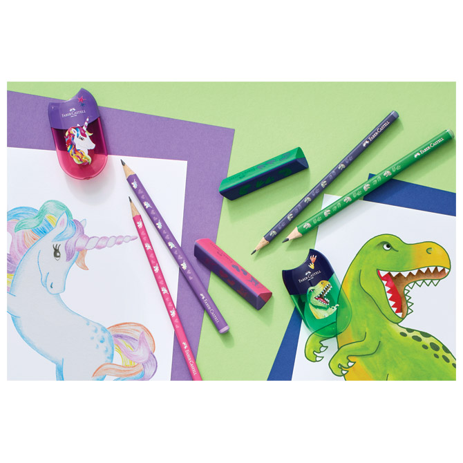 tvrdoća: HB; šiljena; debljina mine: 2,0 mm; bez gumice; ergonomska; trokutasta; vrhunske kvalitete; za pisanje, crtanje i skiciranje; tijelo lakirano eko lakom na bazi vode; na tijelu su motivi u 3D i foliji; posebno je otporna na lomljenje (specijalno spajana – SV); eko olovka (drvo iz certificiranog održivog šumarstva) Pakiranje: 12