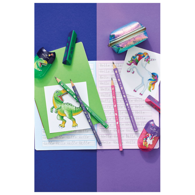 tvrdoća: HB; šiljena; debljina mine: 2,0 mm; bez gumice; ergonomska; trokutasta; vrhunske kvalitete; za pisanje, crtanje i skiciranje; tijelo lakirano eko lakom na bazi vode; na tijelu su motivi u 3D i foliji; posebno je otporna na lomljenje (specijalno spajana – SV); eko olovka (drvo iz certificiranog održivog šumarstva) Pakiranje: 12
