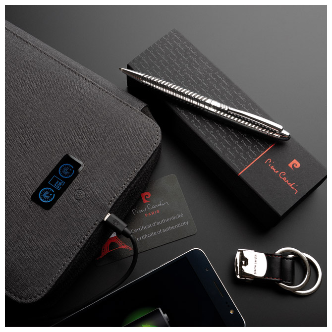 promjer kuglice: 1,0 mm; metalno tijelo olovke te vrh i klipsa; okretni (twist) mehanizam; boja tinte: plava; sa dodatnim uloškom (crnim); u poklon kutiji Pierre Cardin Pakiranje: 1