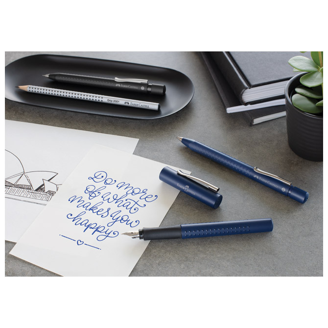 promjer kuglice: 1,4 mm (XB); širina ispisa: 0,6 mm; posebno ugodno iskustvo pisanja zahvaljujući ergonomskom trokutastom obliku te idealno balansiranoj težini olovke; metalni vrh i klipsa; s patentiranim gripom za sigurno, ne klizno držanje; mekani grip; pritisni mehanizam daje sigurnost da tinta neće iscuriti u džepu; tinta ne blijedi (document proof); boja tinte: plava; refil standardni velikog kapaciteta XB za izuzetno glatko pisanje (extra soft) Pakiranje: 5