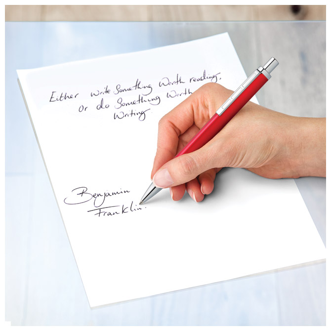 širina ispisa: M; metalna; uložak velikog kapaciteta (G2); sa ugraviranim natpisom STAEDTLER na prstenu i STAEDTLER Mars na kapici; boja tinte: plava; u kartonskoj poklon kutiji Pakiranje: 1/6
