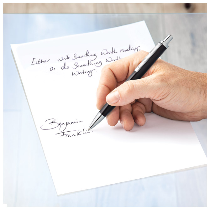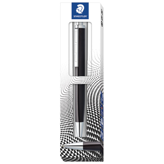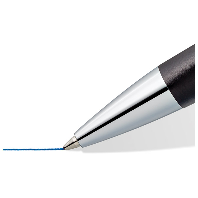 širina ispisa: M; metalna; uložak velikog kapaciteta (G2); sa ugraviranim natpisom STAEDTLER na prstenu i STAEDTLER Mars na kapici; boja tinte: plava; u kartonskoj poklon kutiji Pakiranje: 1/6