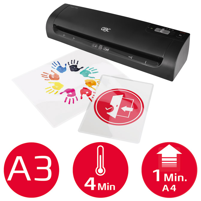 sadrži: 2 valjka; folija: do 75 mikrona; vrijeme zagrijavanja 4 minute; za toplu i hladnu plastifikaciju; plastificira 10 A4 dokumenata za 10 minuta (75 mikrona); gumb za oslobađanje zaglavljenog priloga; svjetlosni signal ukazuje na spremnost za rad; 2 godine garancije plastificira dokumente do A3 formata (maksimalna širina 303 mm) Pakiranje: 1