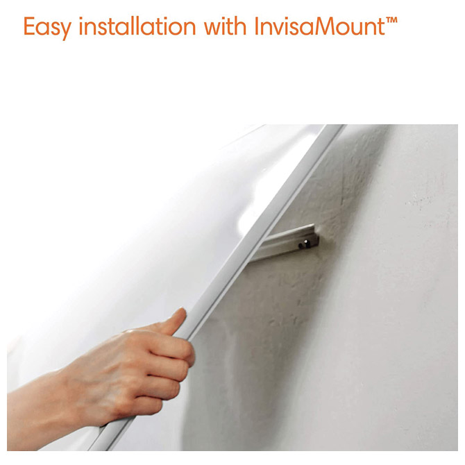 NanoClean™ površina: čelična magnetna površina ploče pruža povećanu mogućnost brisanja, za umjerenu upotrebu; tanak i elegantan aluminijski okvir debljine 6 mm maksimizira prostor za pisanje po ploči; sustav InvisaMount™ čini instalaciju jednostavnom, a pričvršćivači su uredno skriveni iza bijele ploče; koriste se markeri za bijelu ploču; ima elegantni držač za markere i brisač na donjem rubu ploče; sadrži: crni Nobo marker za bijelu ploču; garancija na površinu ploče 15 godina standardni format: 180× 90 cm Pakiranje: 1