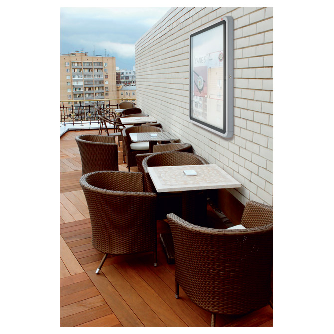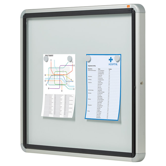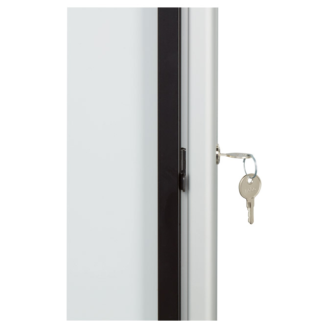 može se koristiti unutar i van zatvorenih prostora; vodootporna; aluminijski okvir; staklena krilna vrata (4 mm); set tipli i vijka za postavljanje na zid; držač za markere i brisač; mogućnost zaključavanja (2 ključa) za 6 x A4 dokumenta / 69,2× 75,2× 4,5 cm Pakiranje: 1