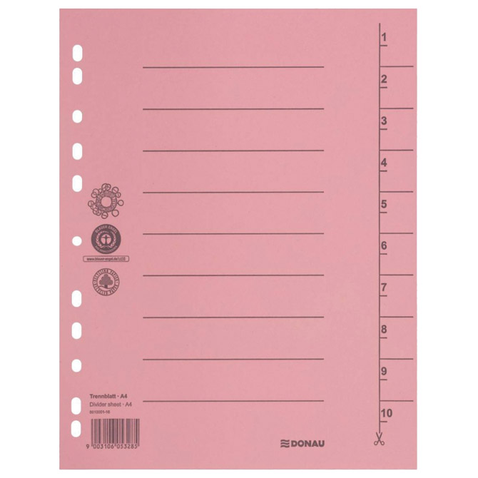 Proizvod: Pregrada kartonska A4 250g pk100 Donau 8610001-04 crvena