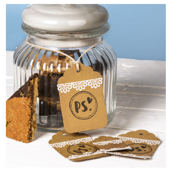 set od 30 komada: 10 privjesnica 3× 4,7 cm, 10 privjesnica 4× 6,2 cm i 10 privjesnica 4,4× 7 cm; 220 g papir; s vrpcom (duljina: 6 m, sirovinski sastav: 100 % poliester); idealno za: dekoriranje (poklona, kutija, staklenki..), izradu čestitki, pozivnica i raznih drugih rukotvorina; blister s bijelom vrpcom Pakiranje: 1/6