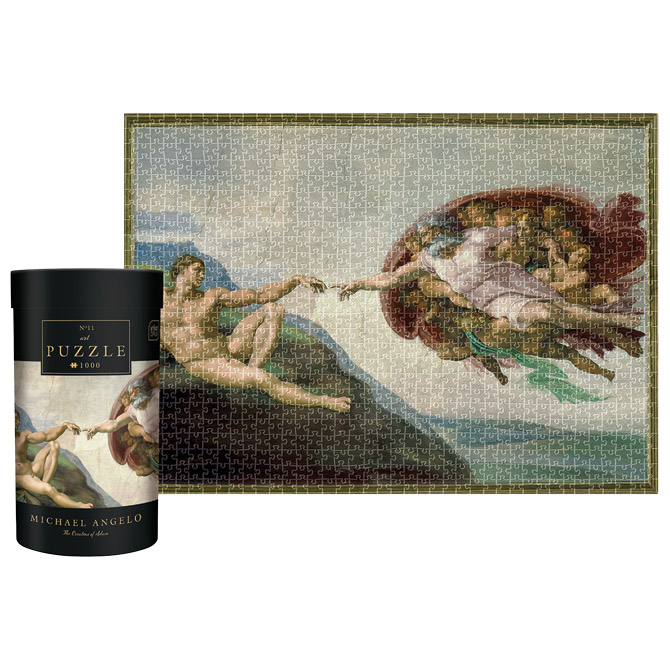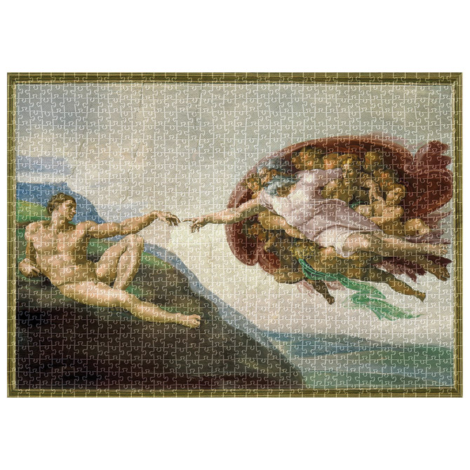 sadrži 1000 dijelova; dimenzija slike: 67× 48 cm; vrhunska kvaliteta izrade; proizveden od troslojne čvrste plave ljepenke; strukturirani premaz; idealno za uokviriti i objesiti na zid; uključena referentna slika za lakše sastavljenje; proizvedeno u Europi; u kartonskoj tubi 11 Michelangelo “ Creation of Adam (Sistine chapel)”