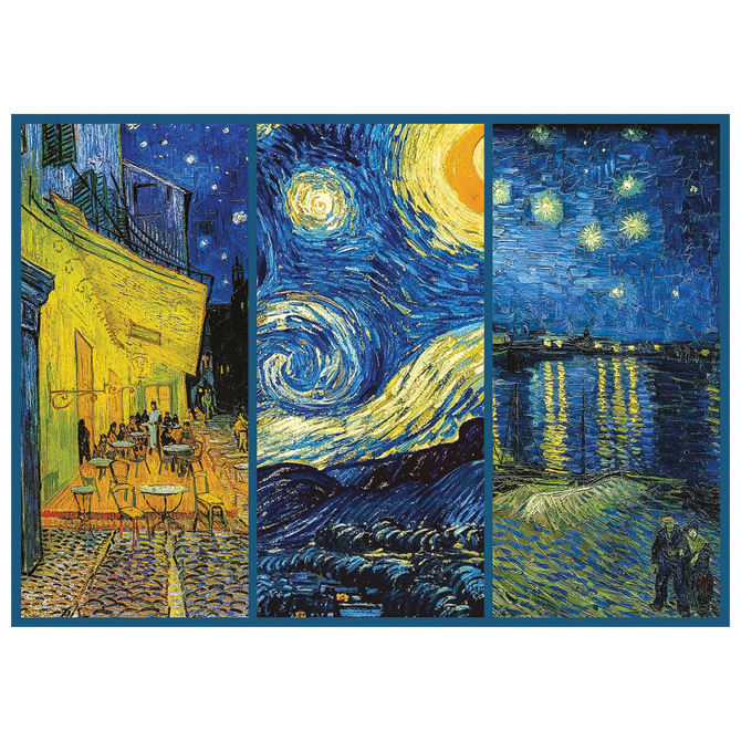 sadrži 1000 dijelova; dimenzija slike: 67× 48 cm; vrhunska kvaliteta izrade; proizveden od troslojne čvrste plave ljepenke; strukturirani premaz; idealno za uokviriti i objesiti na zid; proizvedeno u Europi; u kartonskoj tubi Vincent van Gogh Pakiranje: 1/6