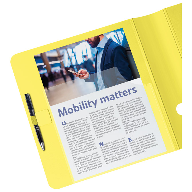 atraktivno zatvaranje s gumicom i rupa za prst na hrptu za jednostavno rukovanje i siguran transport dokumenata;