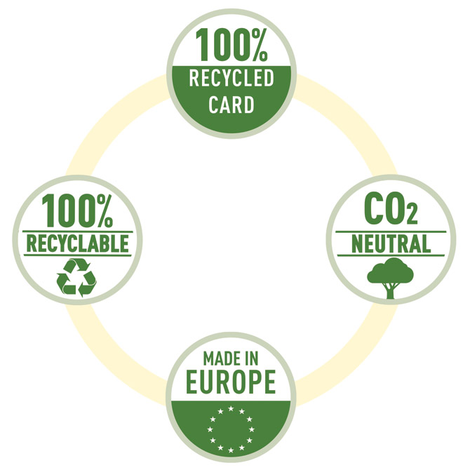 izrađen od 100 % recikliranog kartona te je 100 % reciklirajući (CO2 neutral –