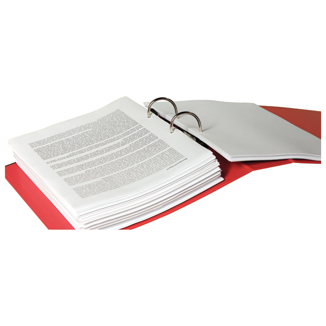 metalna šina na donjim rubovima, bočno zatvaranje i rupa za prst na hrptu za jednostavno rukovanje i sigurno skladištenje dokumenata;