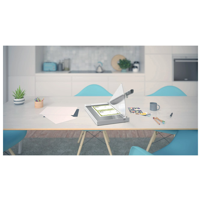 površina baze je staklena i glatka s jednostavnim metričkim linijama mreže, kutnim vodilicama i točnim mjernim pravilima za jednostavno poravnavanje papira;