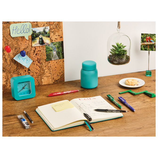 promjer kuglice: 0,7 mm; širina ispisa: 0,35 mm; ergonomski gumirani grip; plastično tijelo olovke; piši-briši-ponovi model; termo-osjetljiva tinta na bazi gela; s poklopcem; 50 % izrađeno iz recikliranih materijala (izuzev zamjenjivih dijelova); rezervni uložak BLS-FR7-S3; tinta na višim temperaturama postane transparentna ili se obriše sa gumicom na vrhu rolera; na niskim temperaturama (-10°C) tinta se ponovno pojavljuje plava Pakiranje: 12/144/864