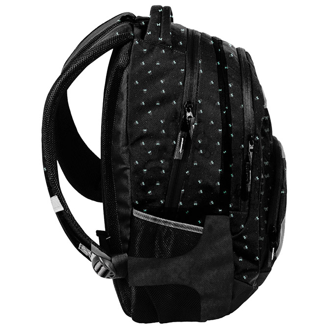 dimenzija: 30x40x18 cm; ergonomski oblikovan leđni dio omogućava protok zraka; podstavljene naramenice; remenčići za podešavanje; snažno reflektirajući, sigurnosni dijelovi; 3 odjeljka sa zatvaranjem na zip (sa dodatnim pretincima); 1 džep na zip s prednje strane; pretinci na bočnim stranama; otvor za slušalice; izrađen od materijala koji odbija vodu; sirovinski sastav: poliester Pakiranje: 1/10