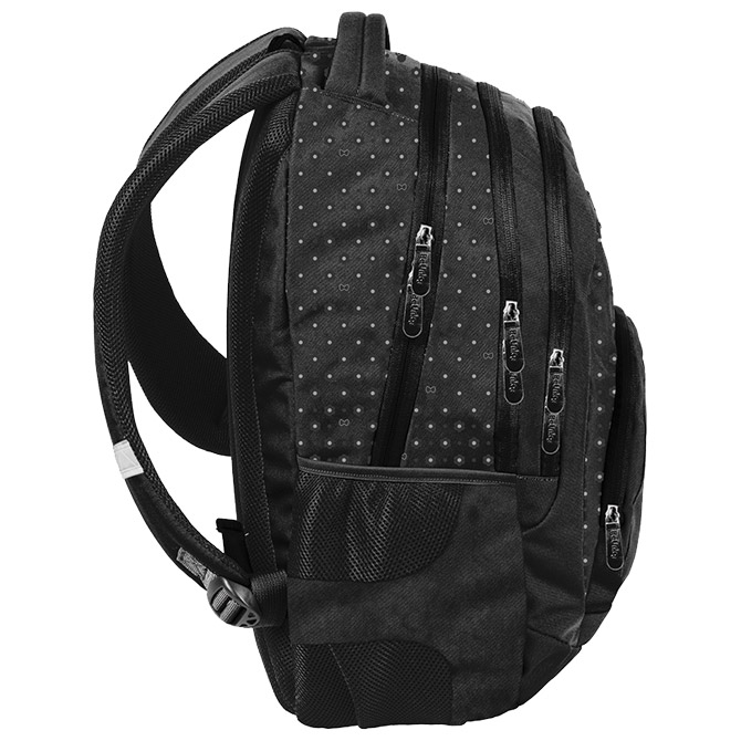 dimenzija: 31x41x16 cm; ergonomski oblikovan leđni dio omogućava protok zraka; podstavljene naramenice; remenčići za podešavanje; snažno reflektirajući, sigurnosni dijelovi; 3 odjeljka sa zatvaranjem na zip (sa dodatnim pretincima); 1 džep na zip s prednje strane; pretinci na bočnim stranama; otvor za slušalice; izrađen od materijala koji odbija vodu; sirovinski sastav: poliester Pakiranje: 1/10