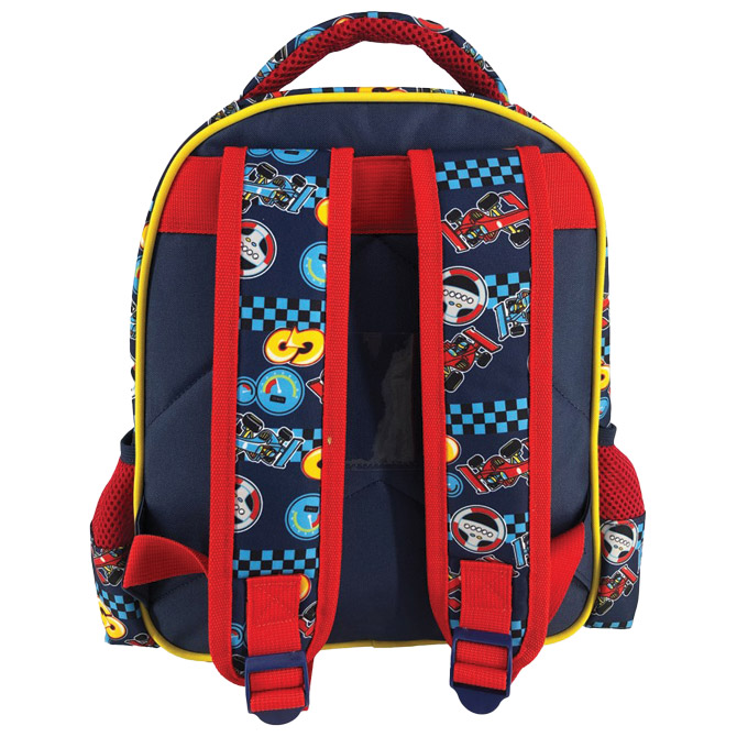 dimenzija: 27x31x10 cm; podstavljene naramenice; remenčići za podešavanje; ojačana ručka za nošenje; 1 odjeljak sa zatvaranjem na zip; 1 džep na zip s prednje strane; pretinci na bočnim stranama; ima mjesto za napisati ime; sirovinski sastav: poliester Little Racing Pakiranje: 1/20