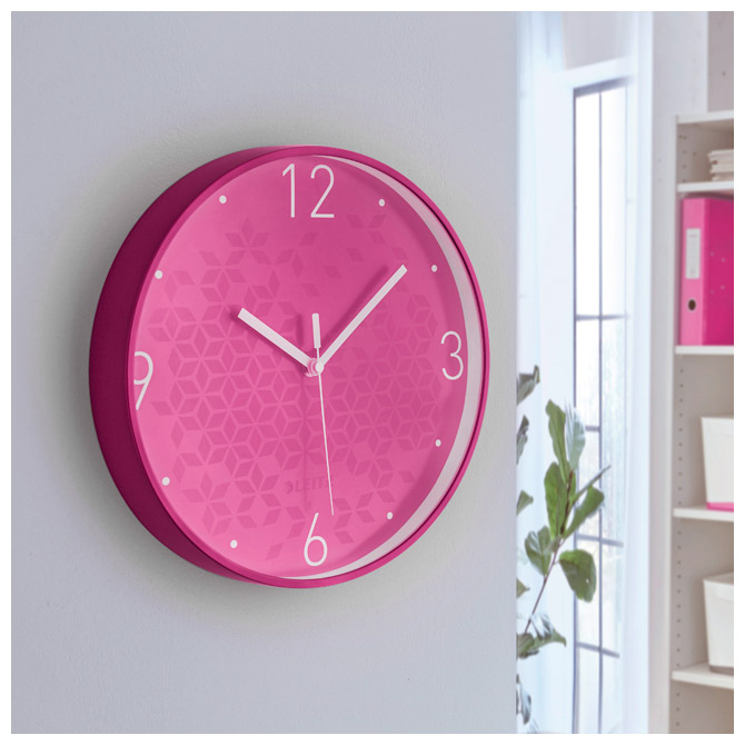 fi: 29 cm; dvobojni okvir izrađen od robusne plastike u kombinaciji sa staklenom prednjom stranom; WOW boja lica s geometrijskim uzorkom i velikim brojevima; kazaljke i brojevi su bijele boje kao odličan kontrast pozadini; tihi kvarcni satni mehanizam idealan je za urede, prostore za čitanje i spavaće sobe tako da vas ne ometa zvuk otkucavanja sata; iz WOW asortimana koji s upečatljivim i modernim bojama daje WOW efekt; za bolju organizaciju u uredu ili kod kuće; 1 AA baterija (nija uključena); montažna rupa za lako vješanje; težina: 0,55 kg Pakiranje: 1