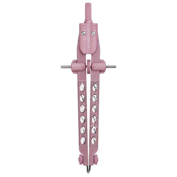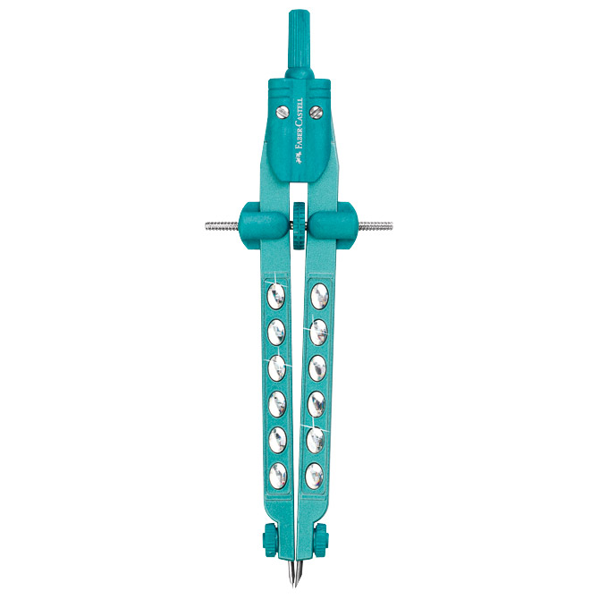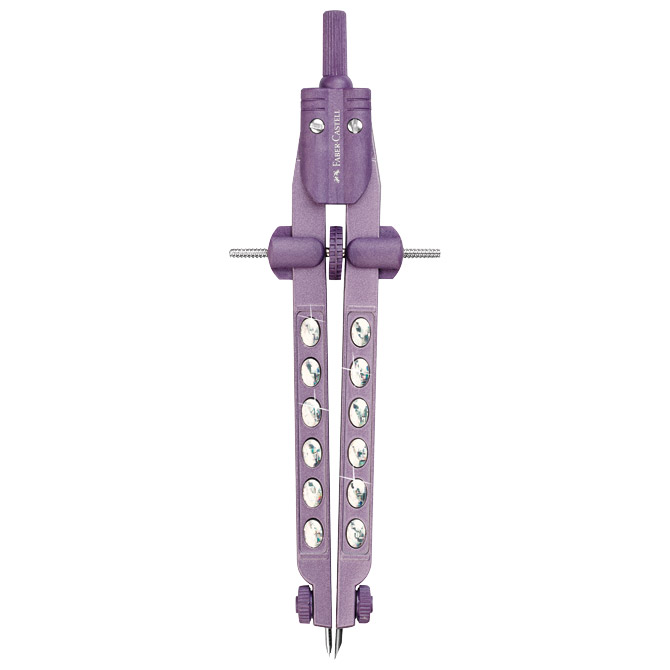 metalni; 3D dizajn sa svjetlucavim glitter elementima; s preciznim podešavanjem; najveći promjer kružnice 340 mm; sadrži i tubu mina; PVC kutija; blister 3 boje: ljubičasta, roza i tirkizna Pakiranje: 1/3