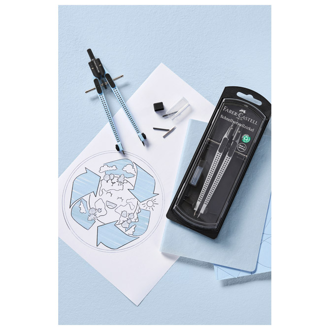 metalni; s preciznim podešavanjem; najveći promjer kružnice 390 mm; duljina 170 mm; sadrži i tubu mina; PVC kutija; blister kutija izrađena od 100 % reciklirane plastike Pakiranje: 1/5/160
