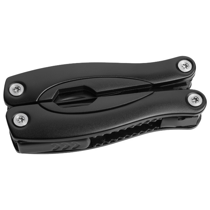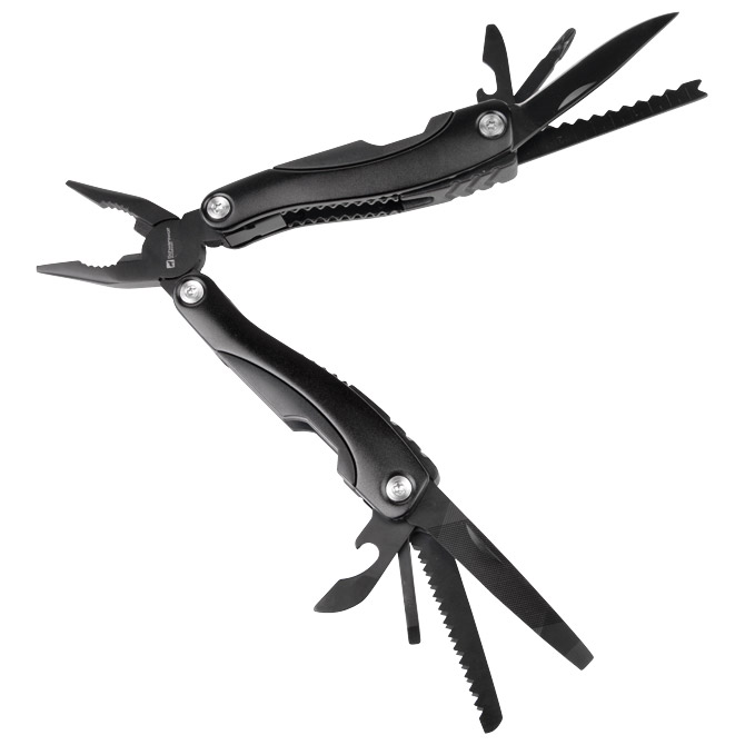 višenamjenski alat 15-u-1 sa sigurnosnom bravom u crnoj torbici od neoprena; materijal: alati od nehrđajućeg čelika, aluminijska ručka; dimenzije (zatvorene): 10×4,5 cm; pakirano u Schwarzwolf poklon kutiju Pakiranje: 1