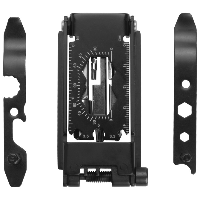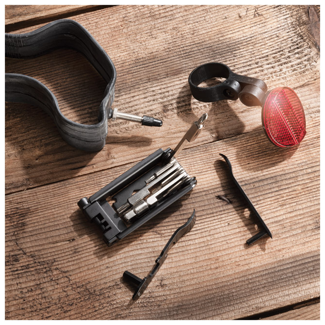 Višenamjenski Schwarzwolf alat za bicikliste; Uključuje 22 alata: torx odvijač (3 veličine), otvarač za boce, ravni odvijač, križni odvijač, 2 montirača za gume, otvarač lanca, šesterokutni ključ (2 veličine), alat za žbice (2 veličine), 2 ravnala, šesterokutni ključ (7 veličina); Pakirano u poklon kutiji; Materijal: ručka – nehrđajući čelik, komponente – krom, vanadij čelik + nehrđajući čelik 420. Dimenzije: 4×1,4×8,2 cm. Pakiranje: 1
