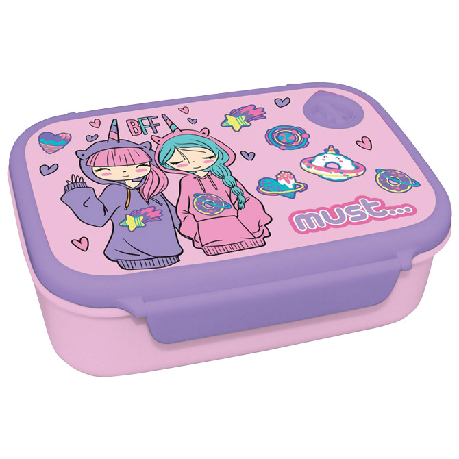 sadrži: aluminijska boca (kapacitet: 500 ml; dimenzija: 21× 6,5 cm (visina x fi); ima zaštitni poklopac; non toxic plastika; bez BPA, bez ftalata i bez bisfenola; nije prikladna za mikrovalnu pećnicu, perilicu suđa i hladnjak) i plastična kutija za užinu (dimenzija: 18x13x6 cm; kapacitet: 800 ml; non toxic plastika; bez BPA, bez ftalata i bez bisfenola; prikladna za mikrovalnu pećnicu i perilicu suđa) Best Friends Forever Pakiranje: 1