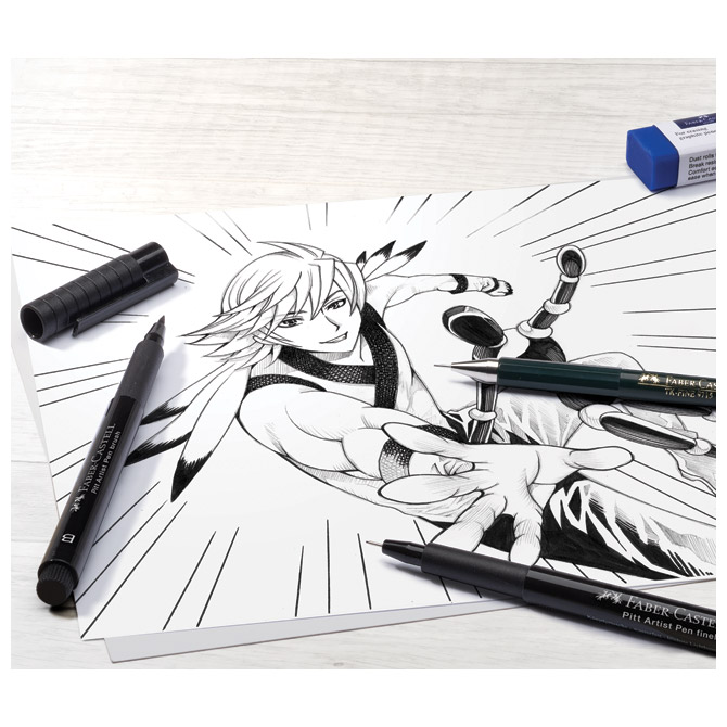 sadrži: 3 x flomaster india ink pit artist pen (vrh: 0,1 mm, 0,7 mm i veličina B (brush vrh)), 1 x tehnička olovka TK-Fine 9715 ( mina: 0,5 mm), 1 x gumica, 12 mina fineline (0,5 mm; B), 1 x model ljudskog tijela; set sadrži sve što je potrebno za Manga crtanje; u kartonskoj kutiji Pakiranje: 1