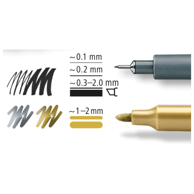 sadrži: 3 x pigment liner 308 širine ispisa: 0,1, 0,2 i 0,3-2 mm (okrugli vrh sa metalnim ojačanjem;