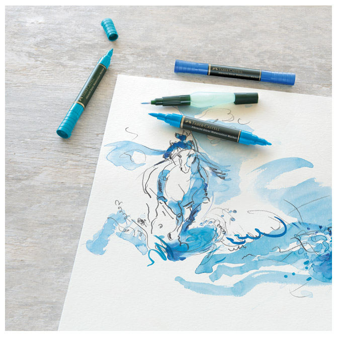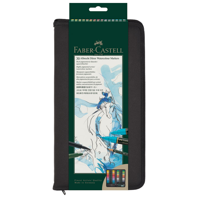 sadrži: 30 boja x flomaster akvarel obostrani Albrecht Dürer watercolour marker (2 vrha (soft brush vrh za dinamične skice i čvrsti vrh za crtanje kontura, preciznih linija i detalja);