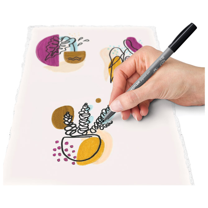 sadrži: 6 x pigment brush 371 u različitim bojama + 1 x pigment pen 376 u intenzivnoj crnoj boji + 1 x olovka grafitna Mars Lumograph 100-2B + 1 x šiljilo 510 10 + 1 x gumica Art 526 B30-9C;