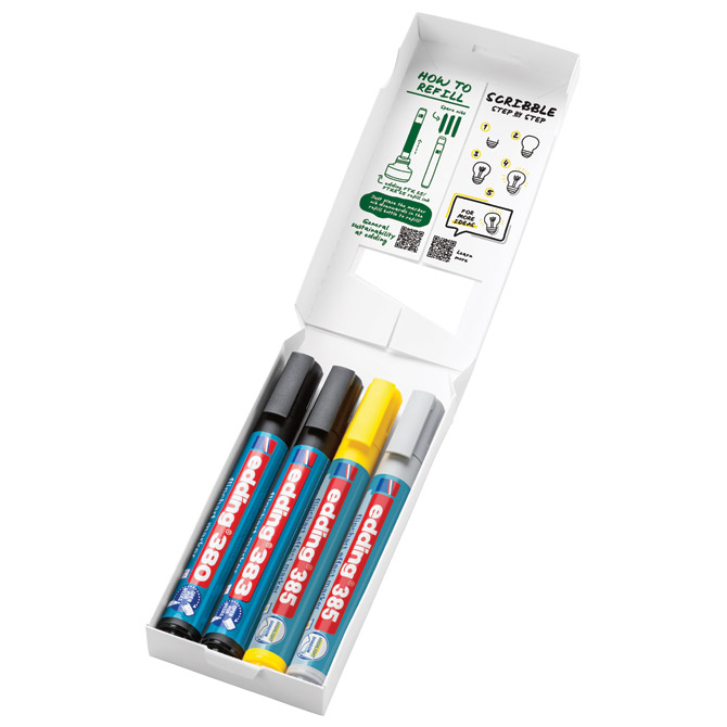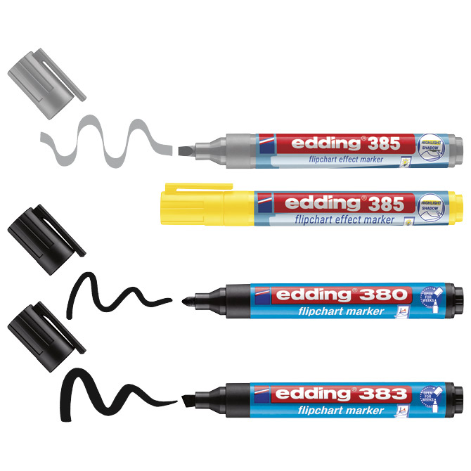 set sadrži: e-385 žuti i sivi za signiranje i sjenčanje; e-380 u crnoj boji za vizualizacije; e-383 u crnoj boji za pisanje Pakiranje: 1/10