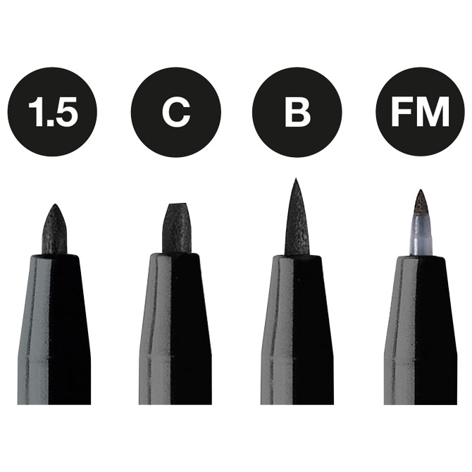 set od 4 debljine: 1,5 mm, C (za kaligrafiju), B (brushpen) i FM (Fude medium) / 199 (crna) Pakiranje: 1/5