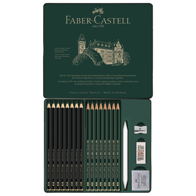 SV)), metalno šiljilo, gumicu (PVC-free), gumicu Art (može se modelirati) i olovku za sjenčanje;