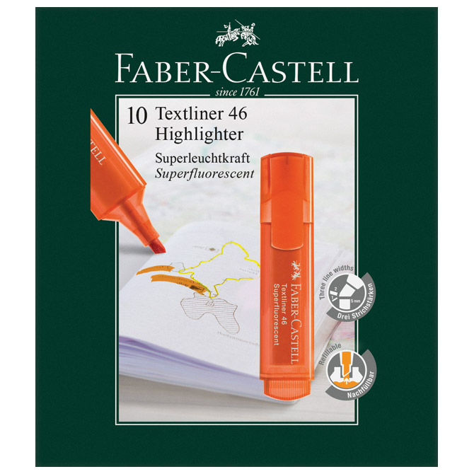 klinasti vrh; širina ispisa 5-2-1 mm; univerzalna tinta na bazi vode s odličnim markerskim svojstvima i mogućnošću ponovnog kapilarnog punjenja (refil Textliner 1549); super fluorescentan; idealan za sve vrste papira u svakodnevnoj upotrebi; poseban vrh označava u 3 širine (5 mm, 2 mm, 1 mm) Pakiranje: 10/50/200