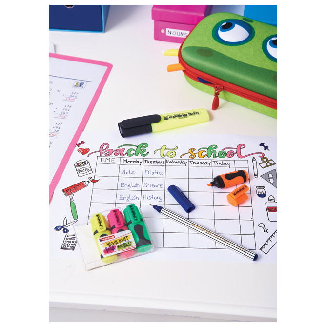 s mogućnošću punjenja; klinasti vrh; širina ispisa 2-5 mm; pogodan za InkJet dokumente set od 6 boja: narančasta, plava, roza, crvena, zelena i žuta; u PVC etui-u; blister Pakiranje: 1/40