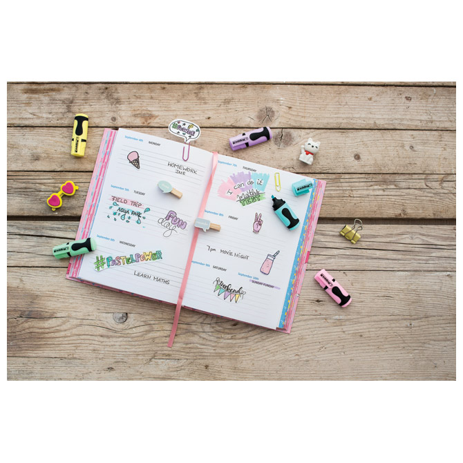 mini; klinasti vrh; širina ispisa 1-3 mm 5 pastelnih boja: narančasta, plava, roza, zelena i žuta (4+1 gratis); blister Pakiranje: 1/10/60