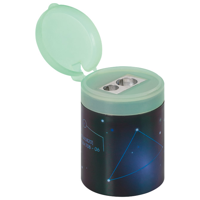 metalno; s PVC kutijom sa poklopcem; 2 rupe; za standardne i jumbo olovke; dimenzija: 4×5,5 cm Pakiranje: 12