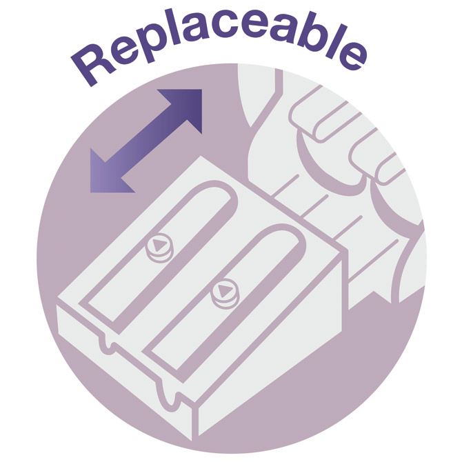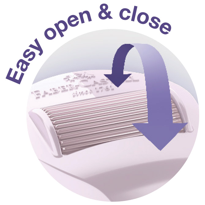 PVC; s PVC kutijom; 2 rupe; izmjenjivi nož; sa sigurnosnim vijkom; visokokvalitetno za jednostavno i čisto šiljenje; ergonomsko; za trokutaste, šesterokutne i okrugle standardne i jumbo olovke (grafitne i drvene bojice); RollOn poklopac sprečava ispadanje otpada; 3 metalik boje: ljubičasta, roza i tirkizna Pakiranje: 6
